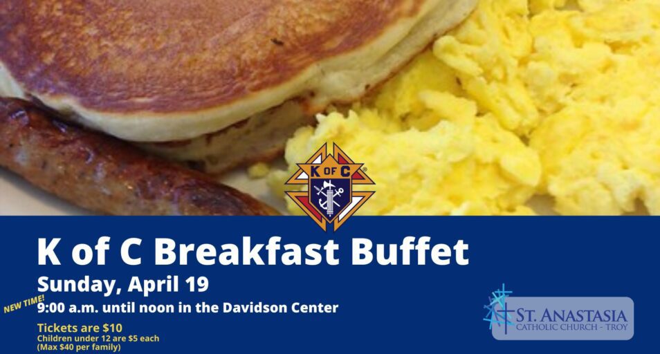 All are welcome to enjoy a delicious pancake breakfast, cooked up by our Knights of Columbus!Sunday, April 19 from 9 am until 12 noon – in the Davidson Center The…Read More >
