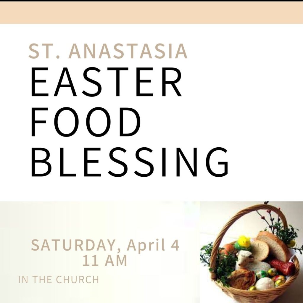 Join us on Holy Saturday, April 4th at 11:00 AM in the church and get your Easter food blessed!
