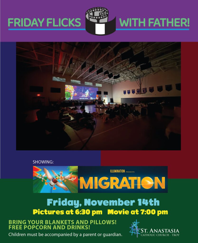 Friday Flicks with Father will be held on Friday, on November 14th at 6:30 pm in the Davidson Center.
