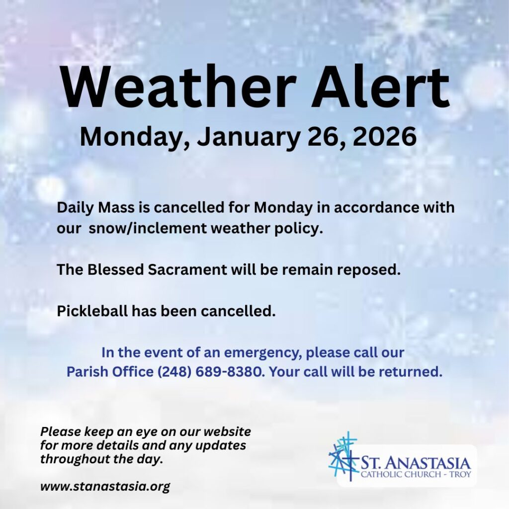 Please keep an eye on our website throughout the day for any updates and our Parish Calendar.
